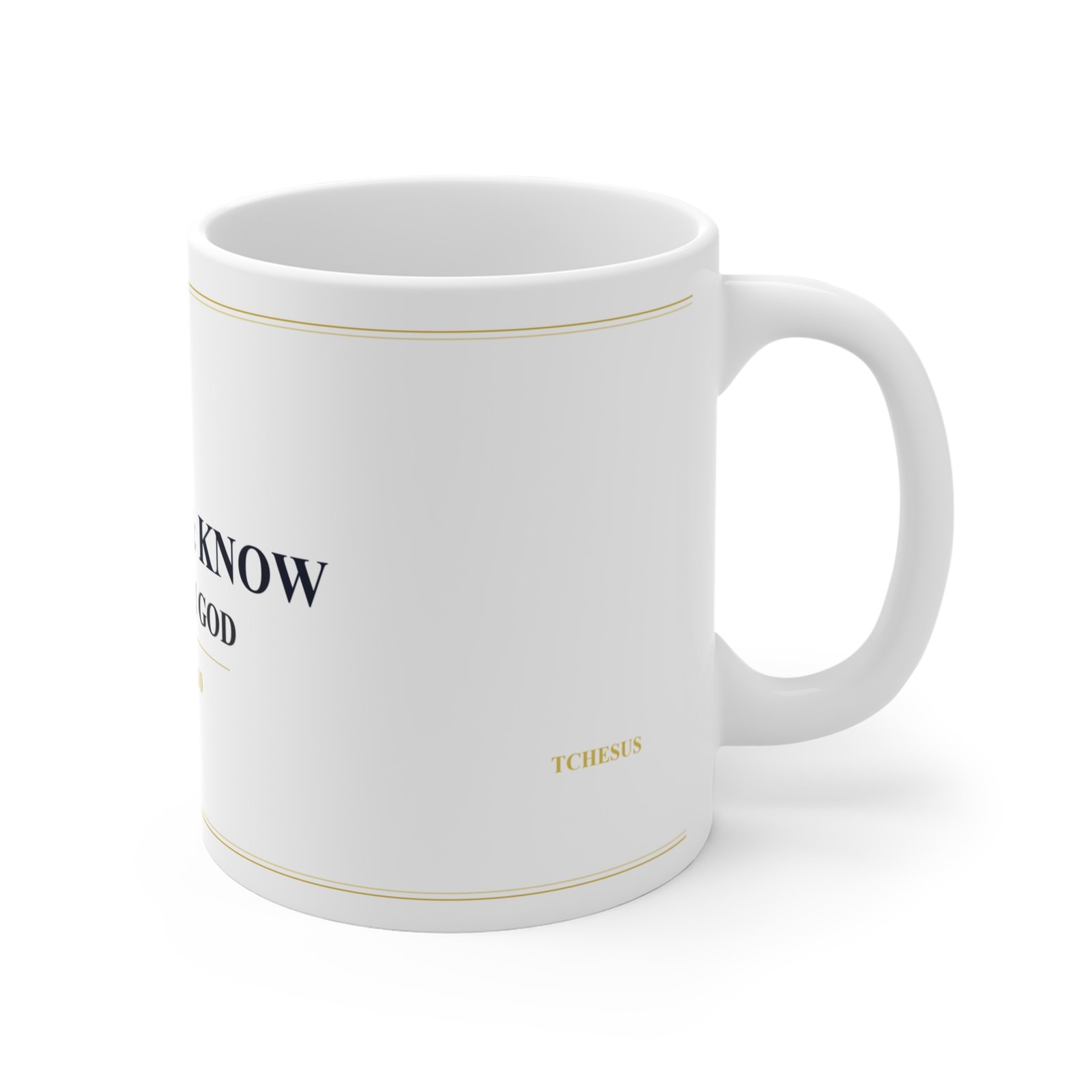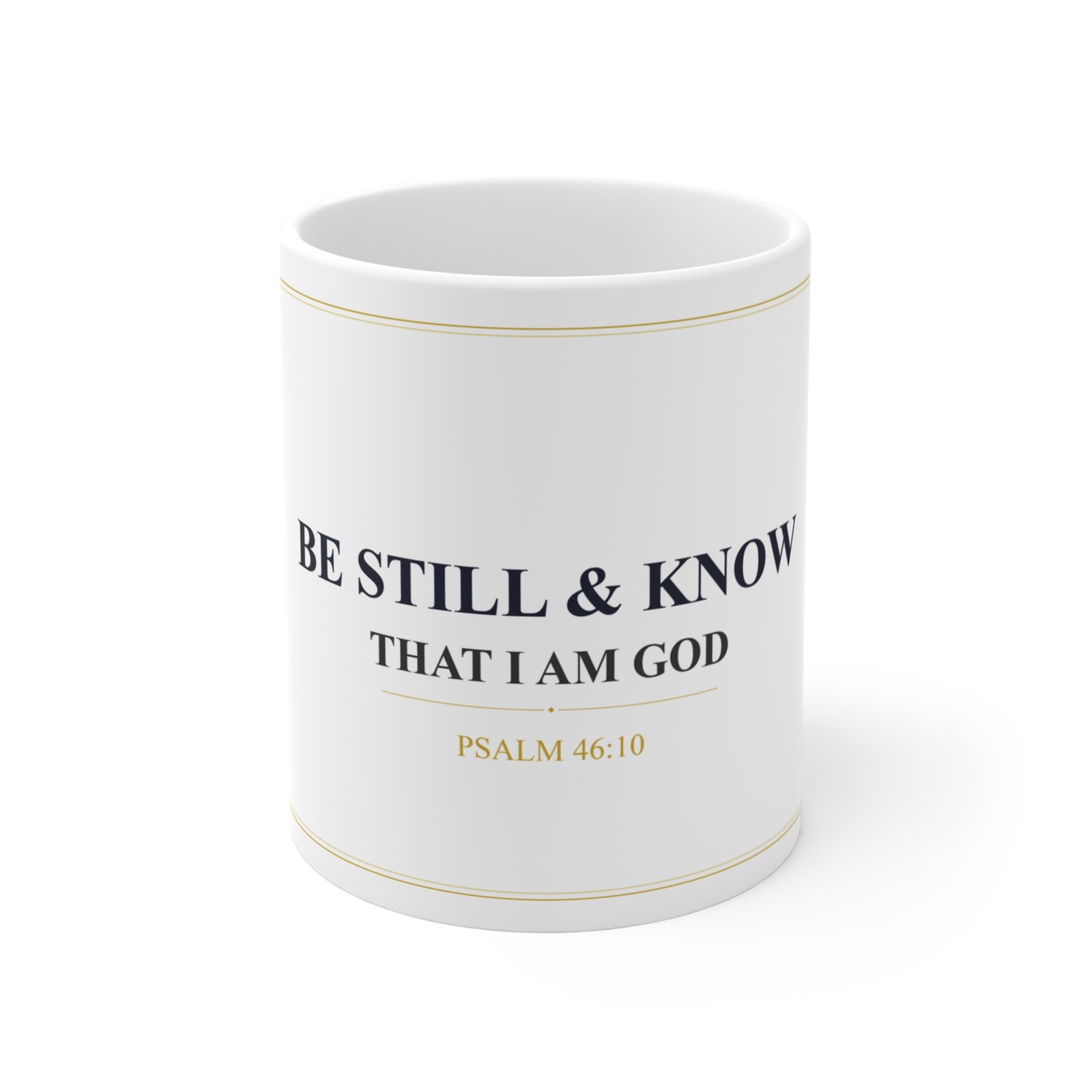 Comienza tu dia con fe. Taza de ceramica con Salmo 46:10.